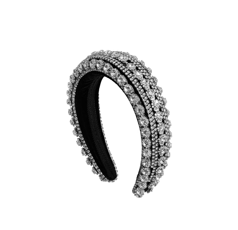 Luxurious velvet headcrown hand embellished with crystal stones.