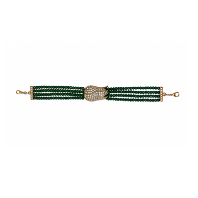 Finished with gold-accented hardware and designed for a comfortable, secure fit, this bracelet adds a touch of regal sophistication to any ensemble. A perfect standalone statement or a luxurious complement to eveningwear, it embodies Hasanova’s dedication to artistry, detail, and enduring beauty.