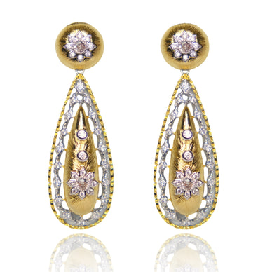 The fusion of heritage craftsmanship with modern detailing makes these earrings a striking accessory, perfect for those who appreciate artistry and tradition. Ideal for adding a touch of elegance to any outfit, they carry the essence of centuries-old beauty reimagined for today's fashion-forward woman. Wear these earrings as a celebration of both culture and style.