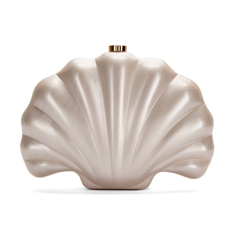 Channel timeless seaside elegance with the Pearl Shell Clutch, a sculptural accessory inspired by the ocean’s natural grace. Crafted from high-shine resin in an iridescent ivory tone, this clutch mimics the soft shimmer of mother-of-pearl — both ethereal and striking.